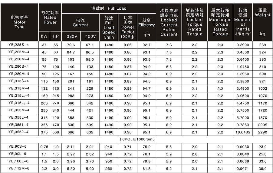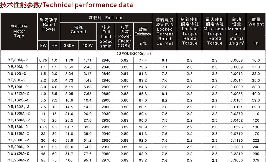| 頻率 | 50HZ可定制 | 效率 | YE3/IE3 |
