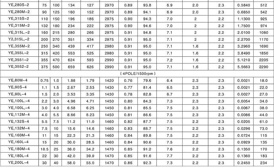| 型號 | YE3/IE3/YE4/IE4 | 極數 | 2-4-6-8 |